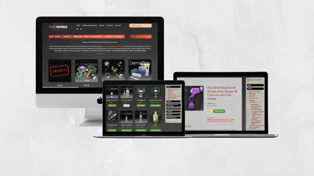 PUREWORKS es una tienda distribuidora de material de tatuaje localizada en Badalona.